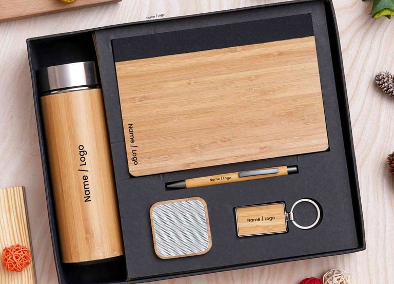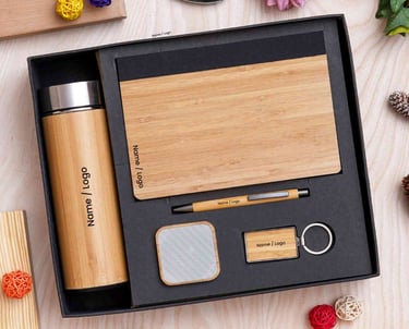 We curate and supply premium sustainable gift hampers for corporates, events, and institutions. Our product range includes bamboo bottles, coffee mugs, diaries, pens, toothbrushes, and lifestyle accessories — all designed to reduce plastic waste while offering a premium brand experience.